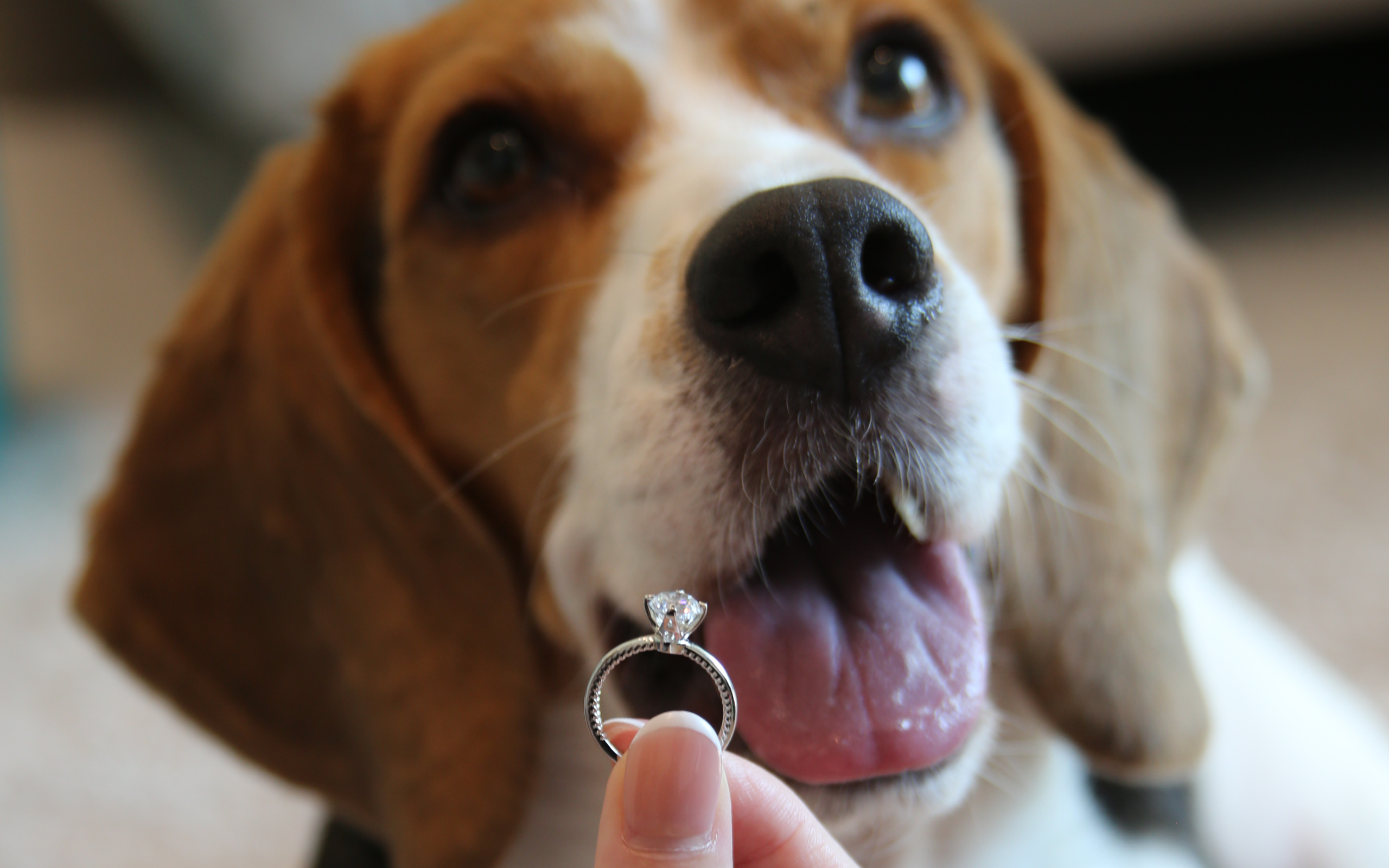 原本想帶牠一起拍婚紗,因為牠就是我們的家人,我們的孩子,突如其來的這個噩耗,讓我們措手不及,但因為真的很希望牠能像過去一樣見證我們的家庭生活,所以我們討論之後,決定把牠做成兩顆寵物鑽石,各放進一枚對戒裡。這樣牠以前那麼愛跟著她,現在也能繼續陪著我們。